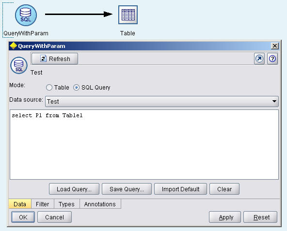 Doubleclick the database node "QueryWithParam" once again, and notice that