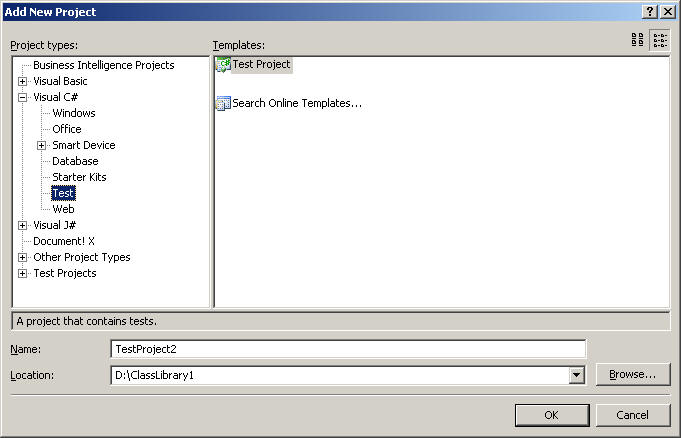 fig 1. Adding a C# test project.
