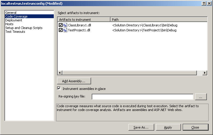 By double-clicking the test configuration file, you can enable Code Coverage: