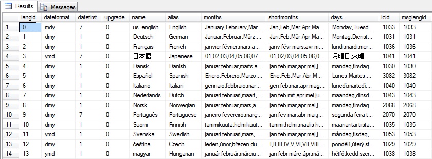 With sp_helplanguage you can see what the default DATEFORMAT for a language is.