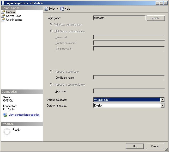 Fig. 1. The SQL Server toolbar with the default database (VGBA_ONT, in this case)