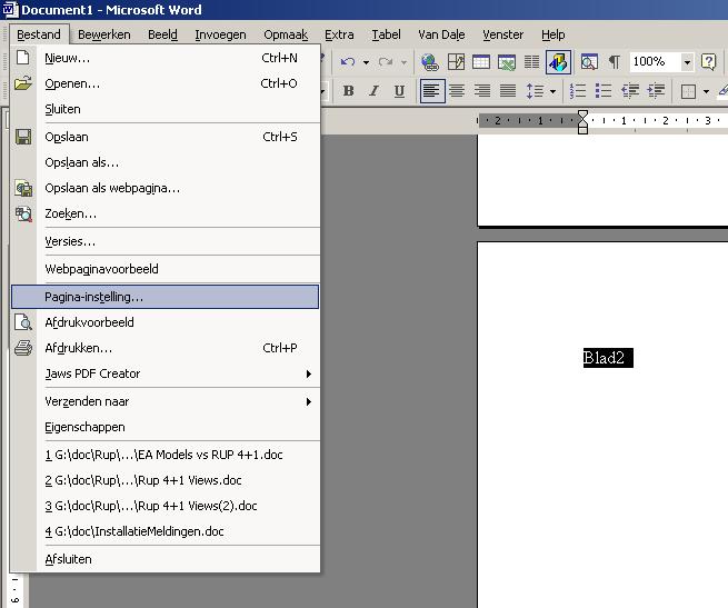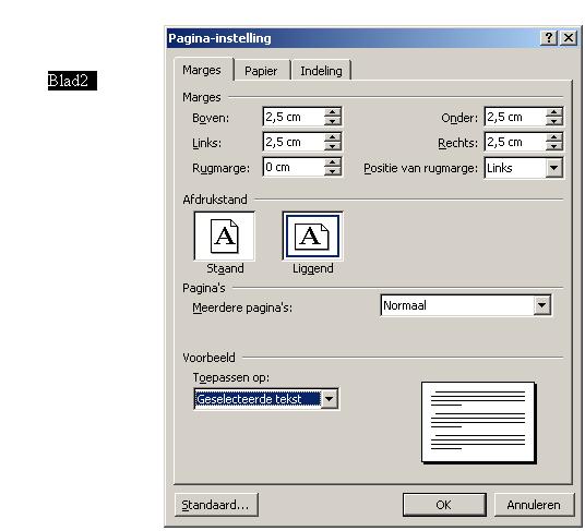 Papierformaat voor één of meerdere pagina's wijzigen (Word2002).