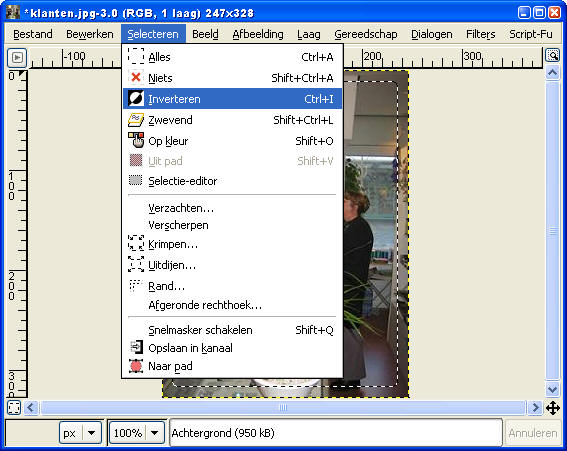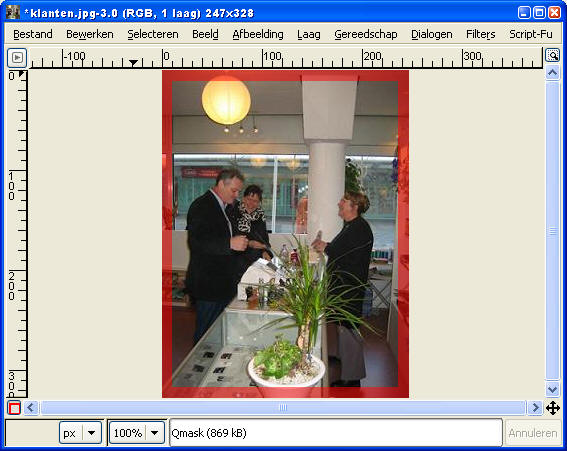 - Schakel het snelmasker in (linksonder, wordt rood).