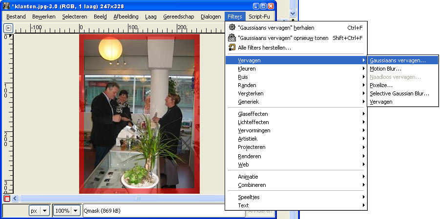 - Kies Filters,Vervagen,Gaussiaans vervagen.